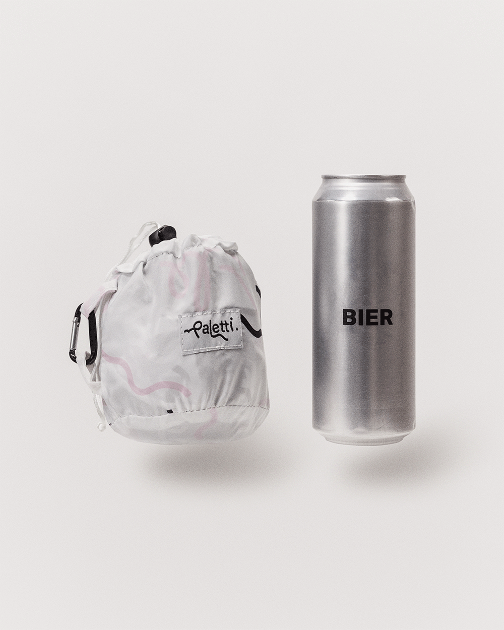 Die Paletti Bag “Zech-Gondel” ist ein ultraleichter, auf faustgröße faltbarer Nylon-Rucksack für den unkomplizierten Transport von Dosenpaletten (meist Bier). Statt schwerem Wagen oder sperriger Kraxe: einfach auspacken, über die Palette ziehen, umdrehen und losmarschieren – wie ein Rucksack.