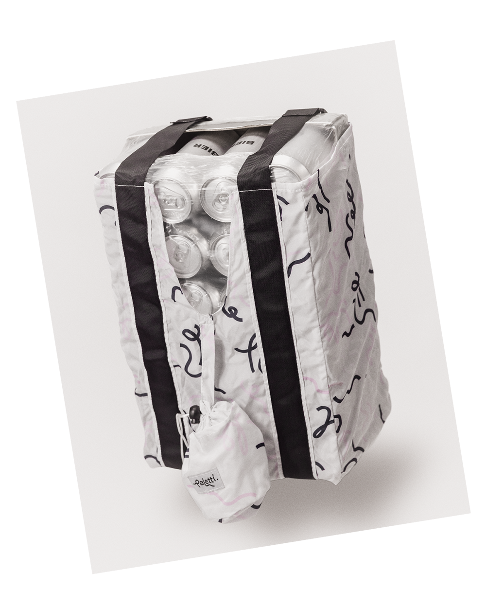 Die Paletti Bag “Zech-Gondel” ist ein ultraleichter, auf faustgröße faltbarer Nylon-Rucksack für den unkomplizierten Transport von Dosenpaletten (meist Bier). Statt schwerem Wagen oder sperriger Kraxe: einfach auspacken, über die Palette ziehen, umdrehen und losmarschieren – wie ein Rucksack.